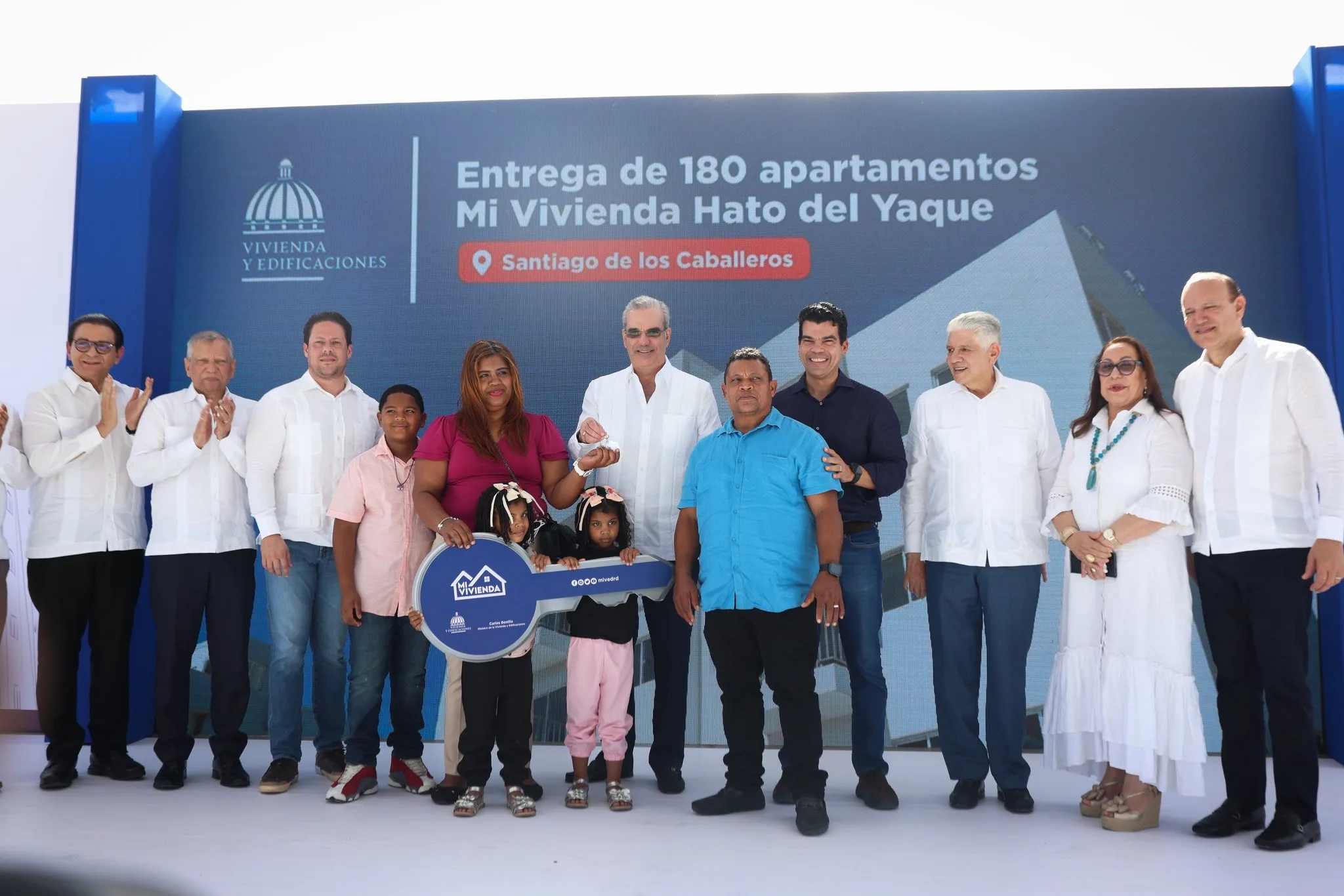 Hato del Yaque, Santiago. – Como parte de las políticas públicas orientadas a reducir el déficit habitacional, dignificar la vida de las familias vulnerables y fortalecer el sistema educativo, el presidente Luis Abinader entregó este sábado 180 apartamentos del Plan Mi Vivienda, que beneficiarán a igual número de familias, y dejó inaugurada la Escuela Básica Hato del Yaque, impactando de manera directa a más de 650 estudiantes de este distrito municipal.