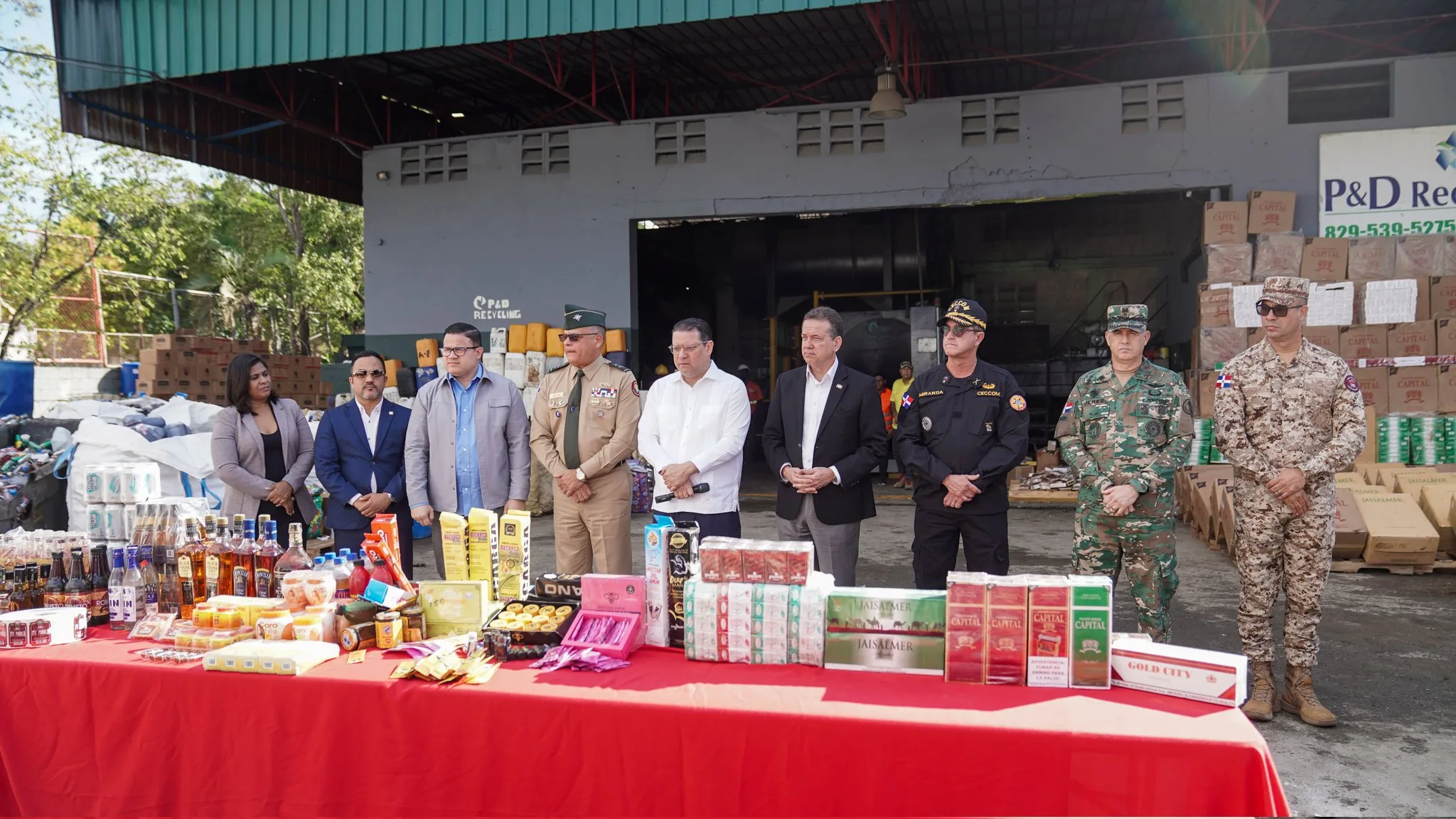 La jornada se realizó en la planta P&D Recycling, ubicada en el municipio de Haina, provincia San Cristóbal, y reafirma el compromiso del Estado dominicano de proteger la salud pública, la legalidad comercial y la estabilidad económica nacional.