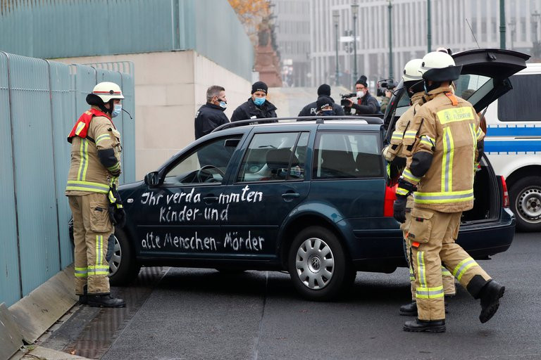 El suceso ocurrió mientras en el interior de la sede gubernamental se celebraba un Consejo de Ministros, al que seguirá la reunión entre la canciller Angela Merkel y los líderes regionales, en la que se espera se prolonguen las restricciones por la pandemia.