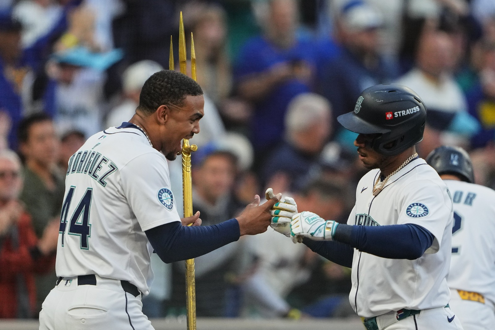 El candidato al MVP, Cal Raleigh, encendió la chispa con un doble que lo llevó hasta la segunda base, deslizando de cabeza mientras la multitud rugía en el estadio. Fue entonces cuando Rodríguez tomó el protagonismo.