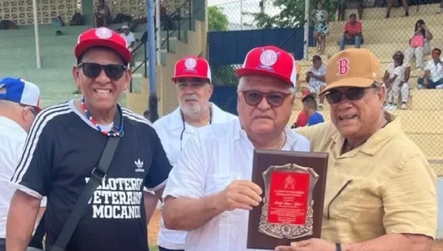 El del poloche negro en la foto es Roberto Pichardo (Tuta), haciendo un reconocimiento a Regino Torres (Pití), a quien apodaban en la pelota amateur “Mata de Hits”.