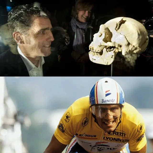 El equipo de Atapuerca, descubrió el cráneo en 1992 y ese año Induráin hizo el doblete, ganando el Tour de Francia y el Giro de Italia, lo bautizaron Miguelón en su honor.