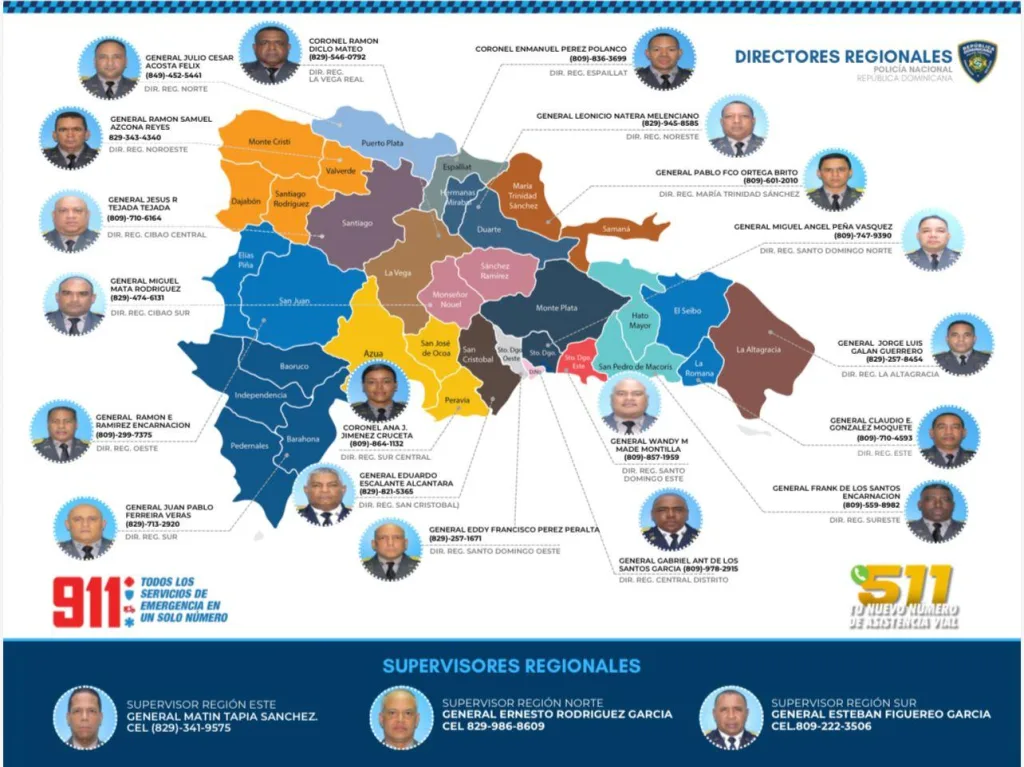 SANTO DOMINGO, RD.– La Policía Nacional puso en funcionamiento un mapa interactivo que permite a los ciudadanos identificar y comunicarse directamente con los 19 directores regionales encargados de la seguridad en todo el país.