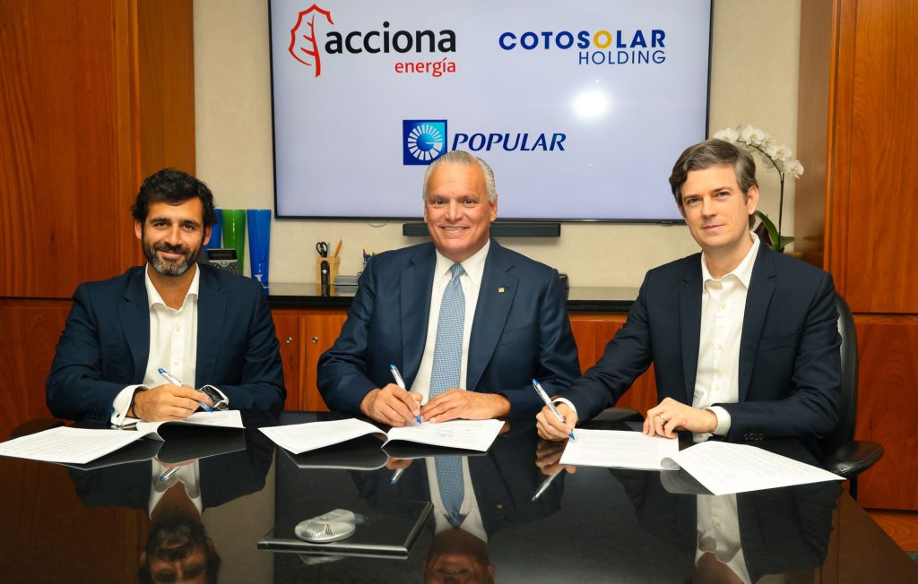 Santo Domingo, RD. – El Banco Popular Dominicano y la empresa Cotoperí Solar FV, liderada por la compañía energética española ACCIONA Energía y Cotosolar Holding, han anunciado la firma de un contrato de préstamo por hasta US$100 millones para financiar la construcción del Parque Fotovoltaico Cotoperí Solar I, II, III, que será el mayor parque solar de Centroamérica y Caribe.