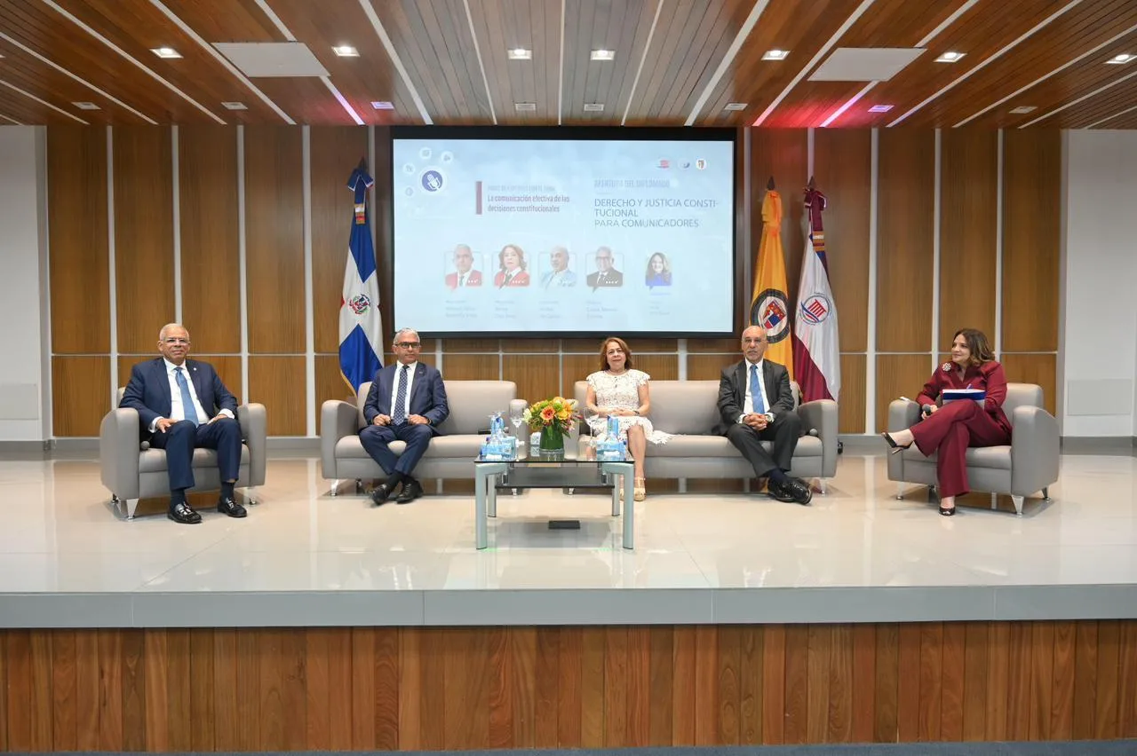 La apertura del programa se realizó con el panel “La comunicación efectiva de las decisiones constitucionales”, en el que participaron los magistrados Manuel Ulises Bonnelly Vega y Sonia Díaz Inoa, junto al presidente y director del periódico Diario Libre, Aníbal de Castro, y el abogado, periodista y profesor Carlos Manuel Estrella.